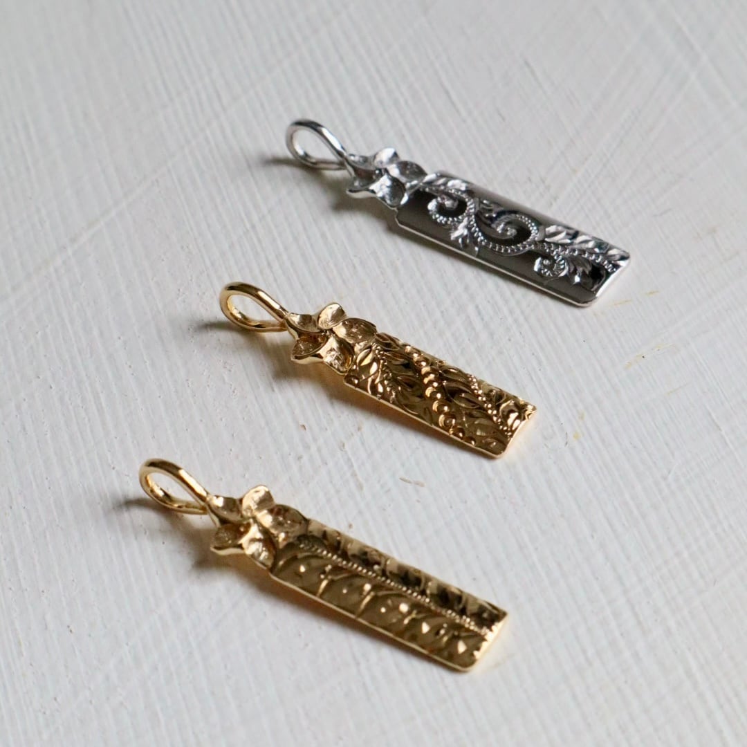 プルメリアバーペンダントトップ(マイレ・モキハナ)(シルバー925 + K18ゴールドコーティング)
