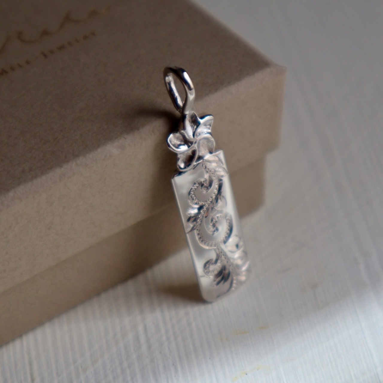 プルメリアバーペンダントトップ(スクロール)(シルバー925 + ロジウムコーティング)