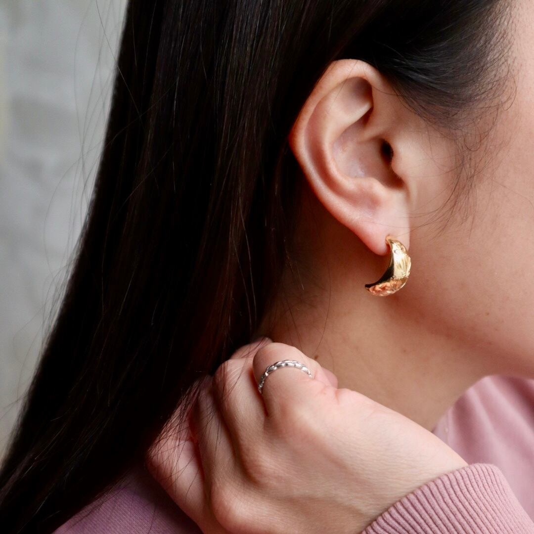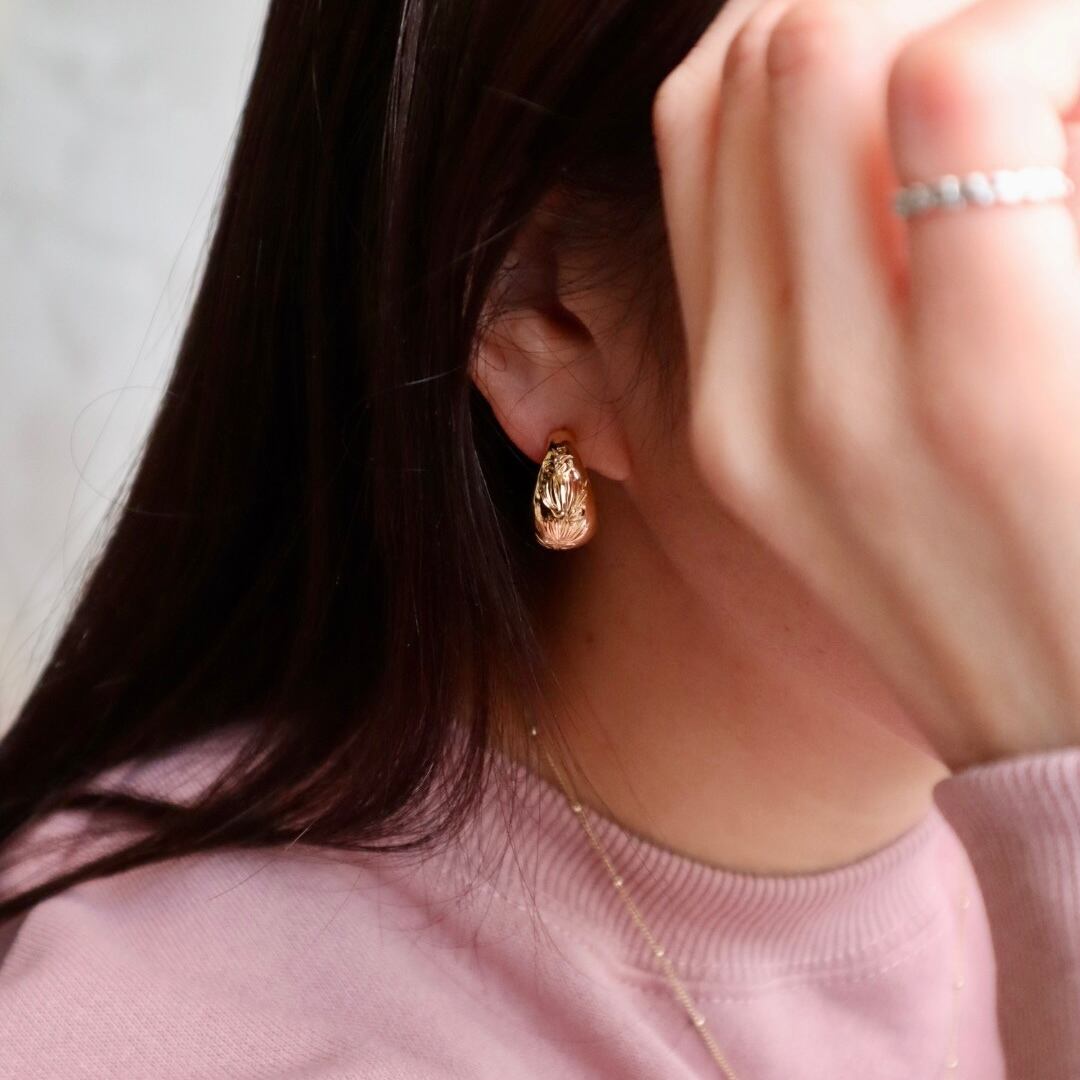 ぽってりとしたボリューム感がとても可愛らしい、大ぶりのピアスです。