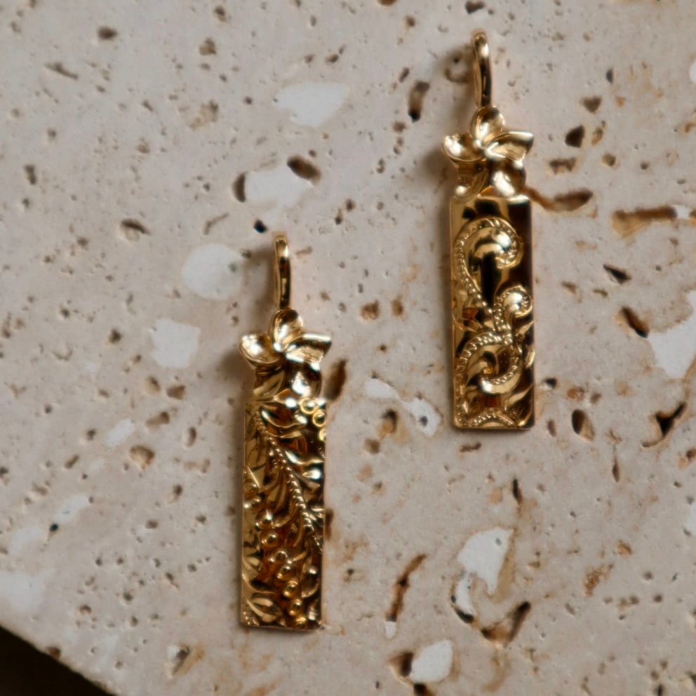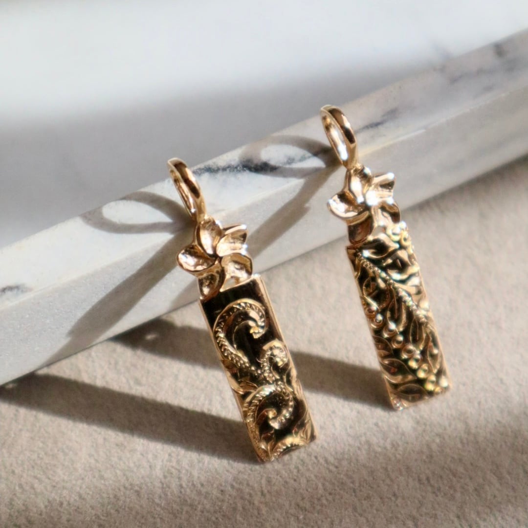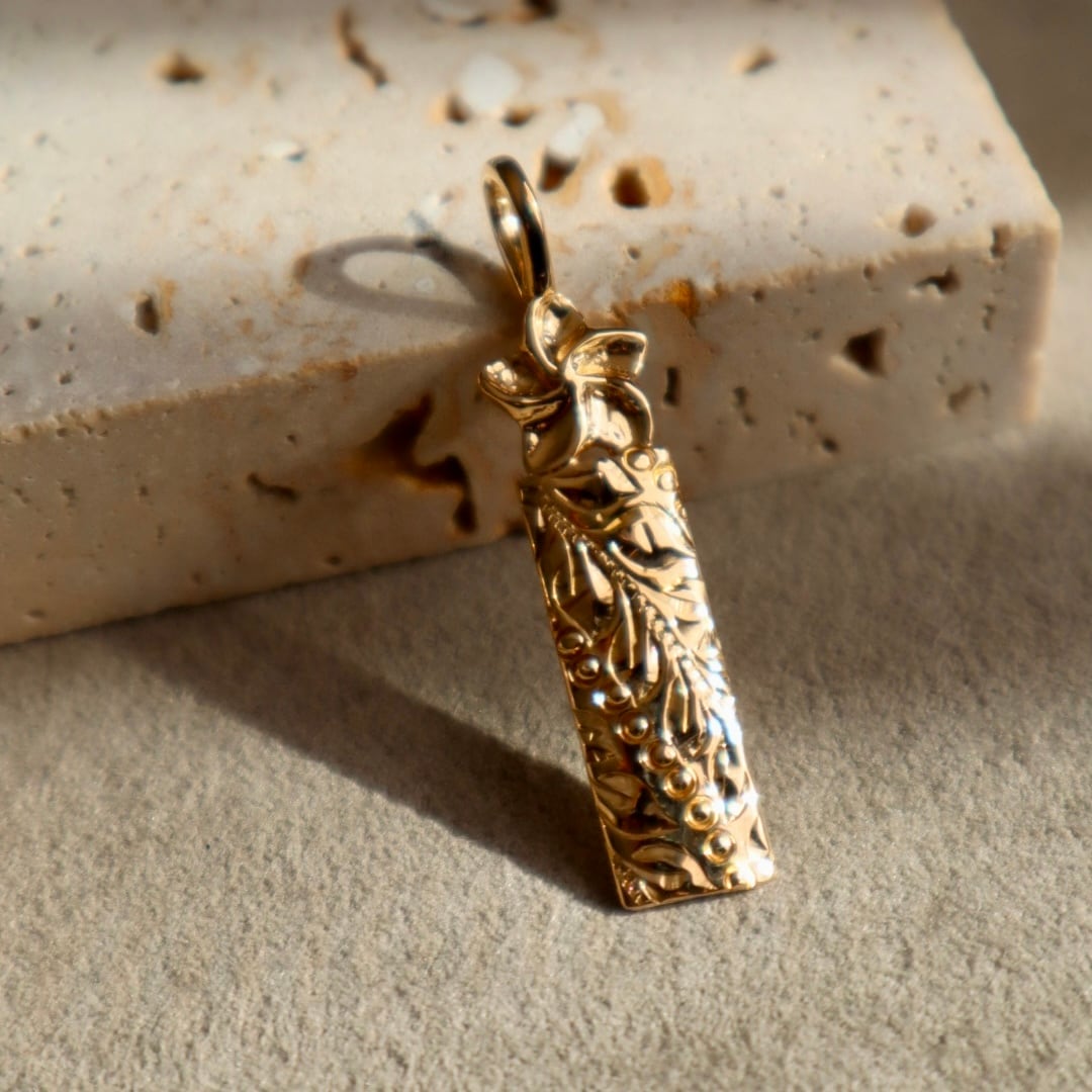 プルメリアバーペンダントトップ(モキハナ・マイレ)(シルバー925 + K18ゴールドコーティング)