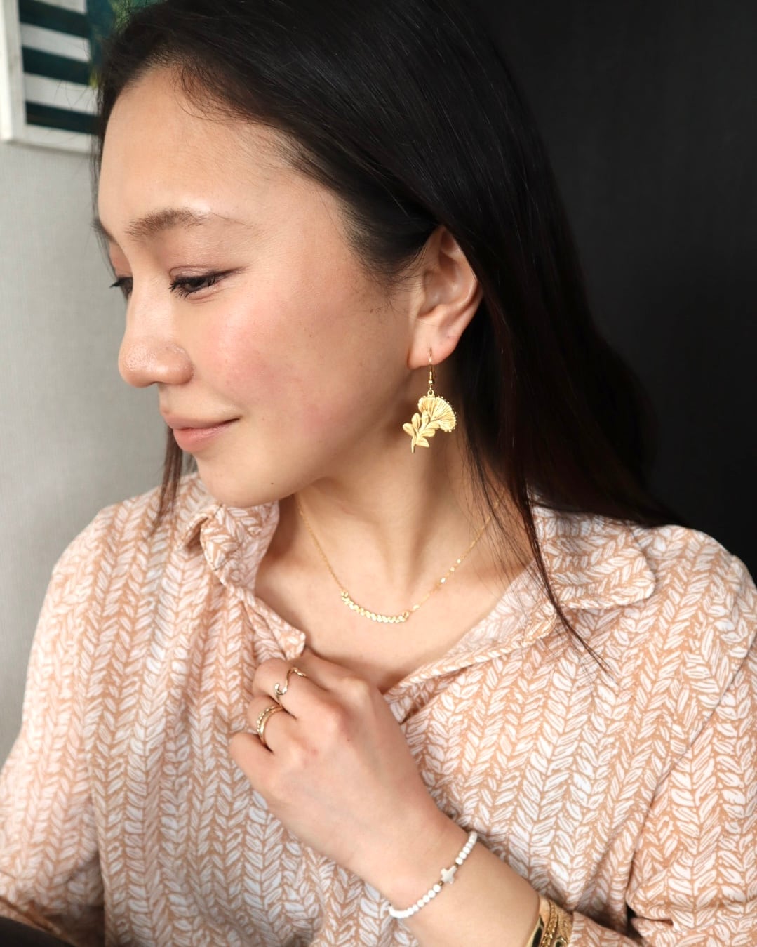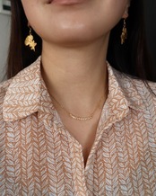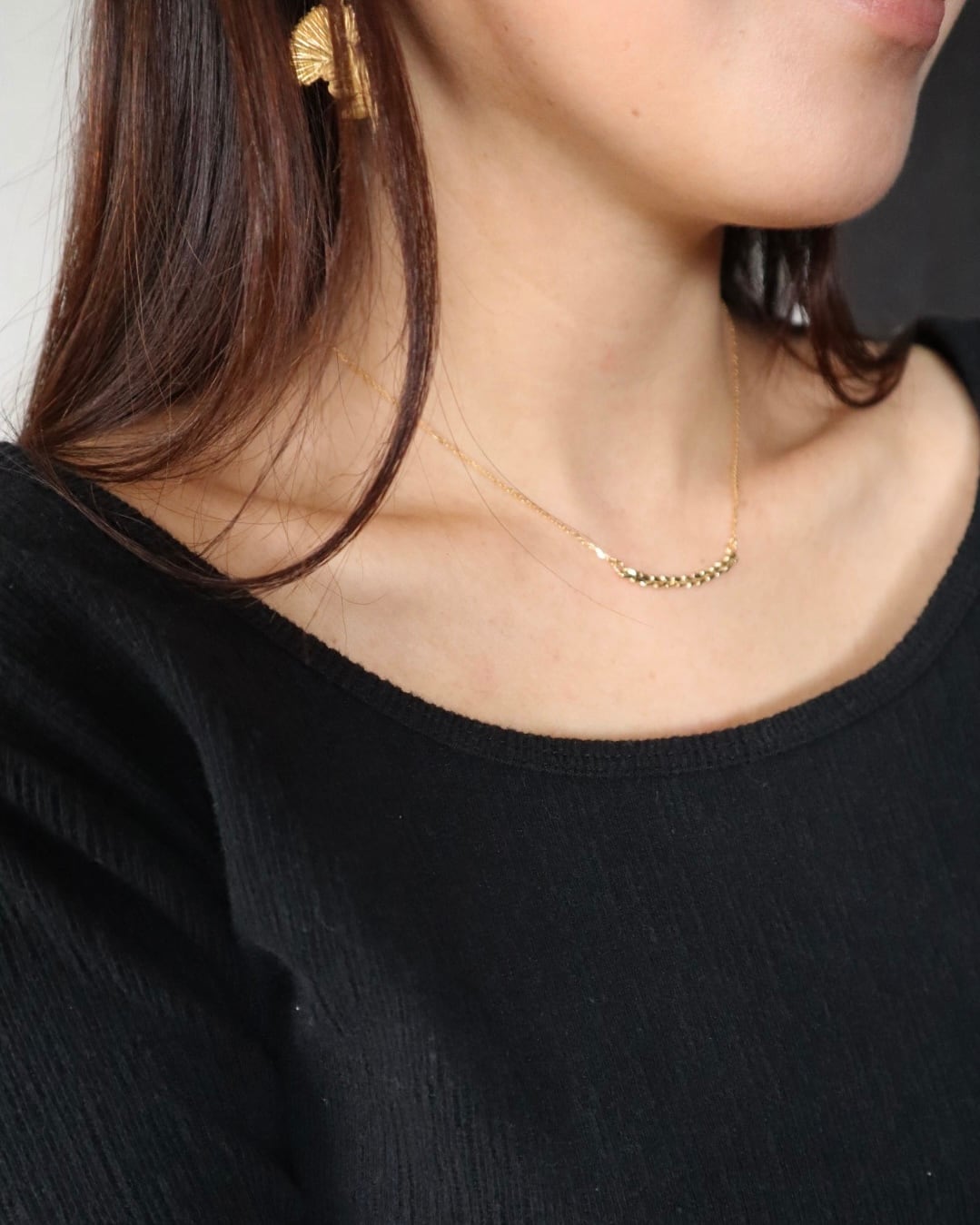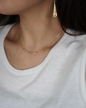 ゴールドカラーのジュエリーは、日本人の肌に良くなじみ、首元を華やかに彩ります。