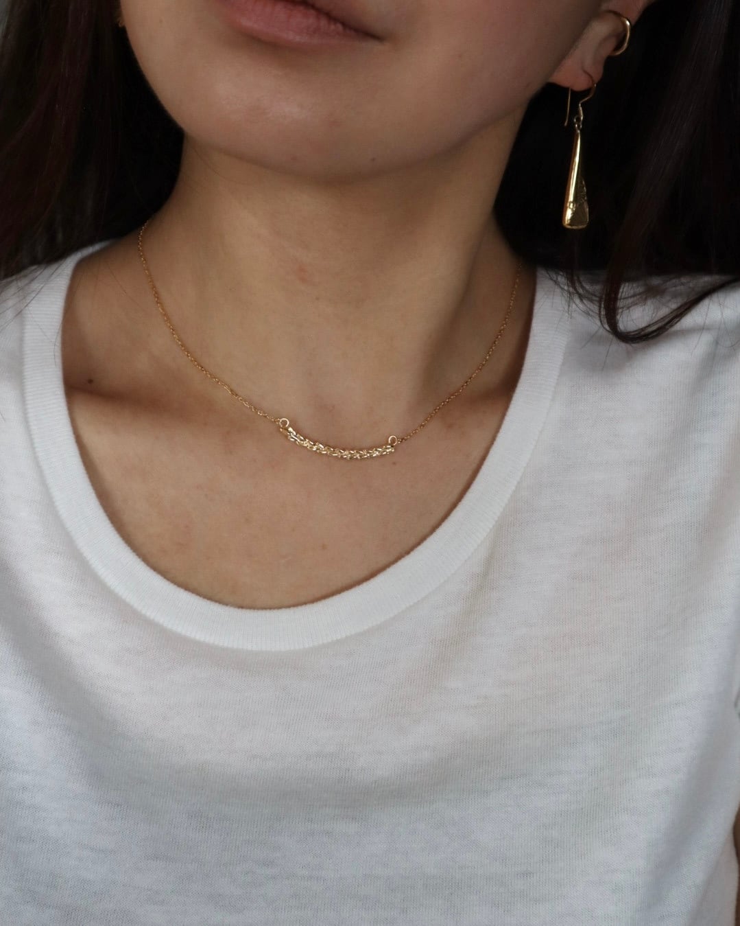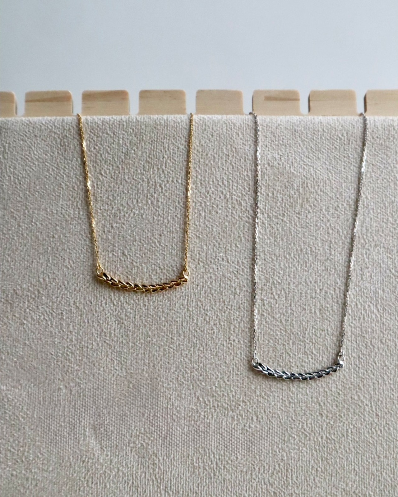 レイのようにゆるやかなカーブを描き、デコルテに自然に馴染みます。