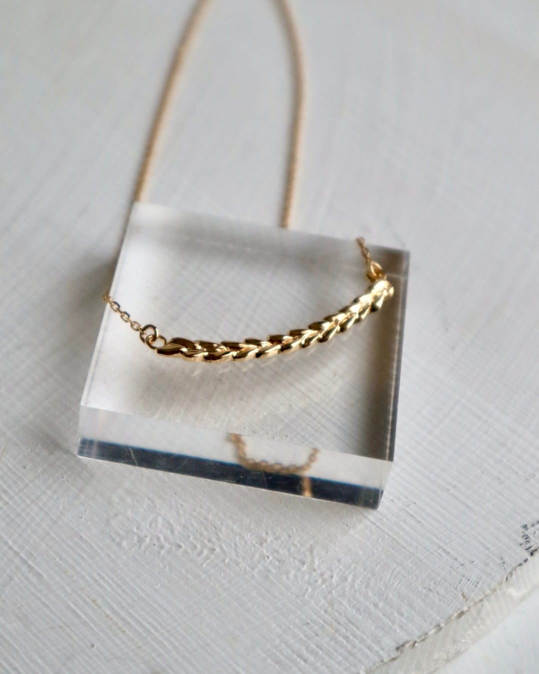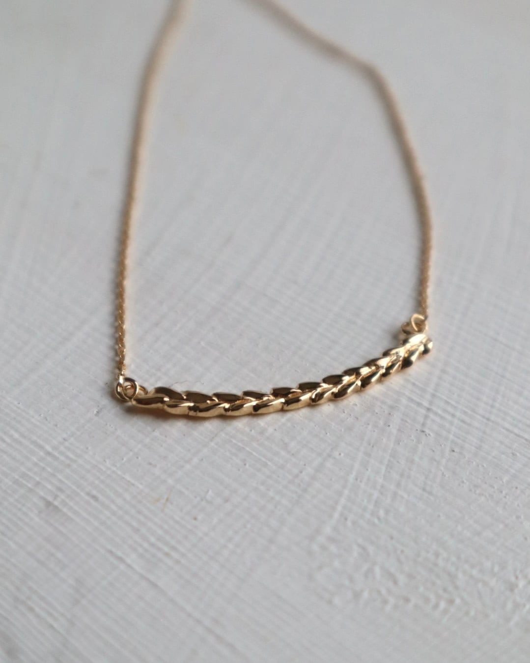 マイレをモチーフにした、バータイプのネックレス。