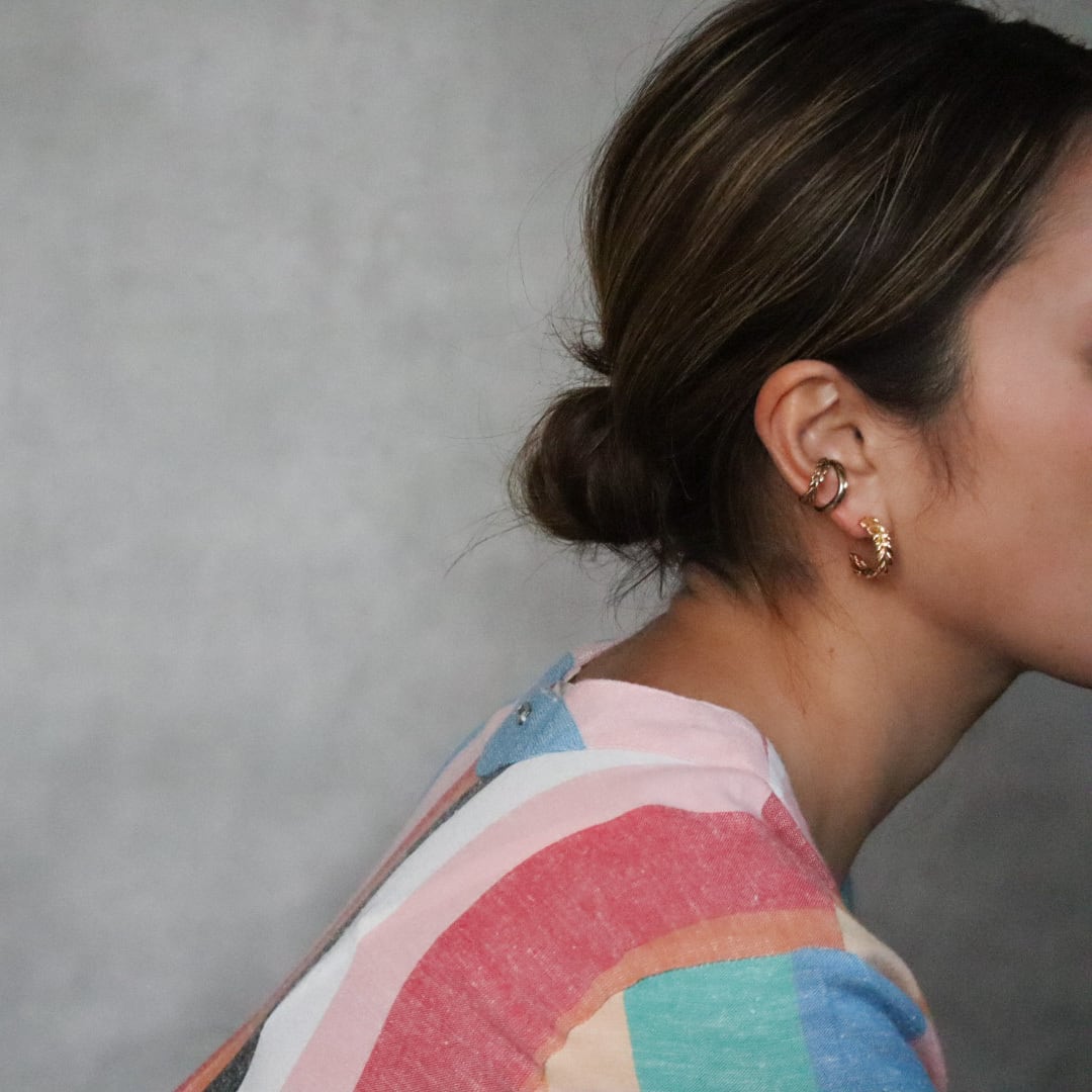 小ぶりなピアスとの重ねづけもオススメです。