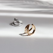 葉っぱが重なり合うデザインと、緩やかなカーブが印象的なフープの2連になっています。