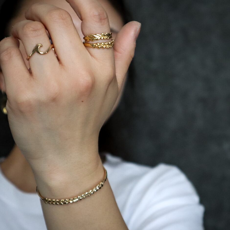 Mele JewelryのロゴのMの部分を切り取りデザインした、波モチーフのリングです。