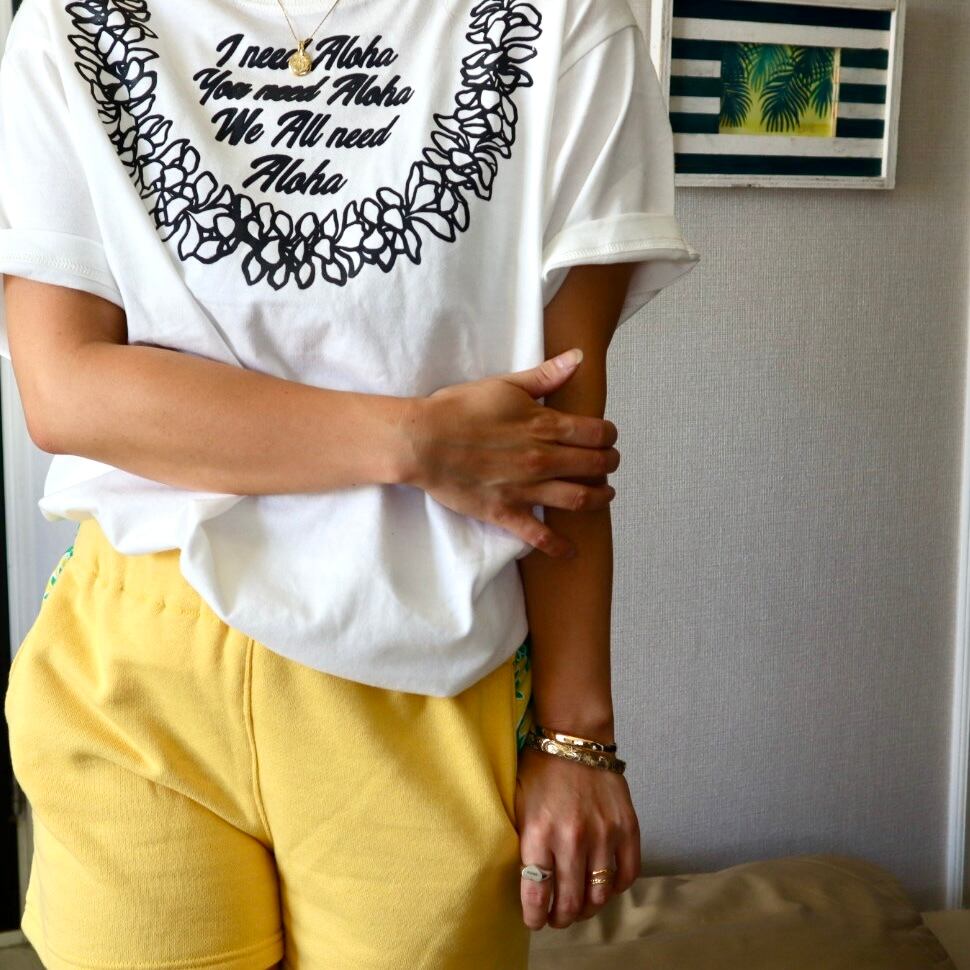 Tシャツやニット、スウェットなどのシンプルなトップスに合わせればアクセントになりますし、リゾートワンピースや色物・柄物などの主張のあるアイテムにも馴染みます。