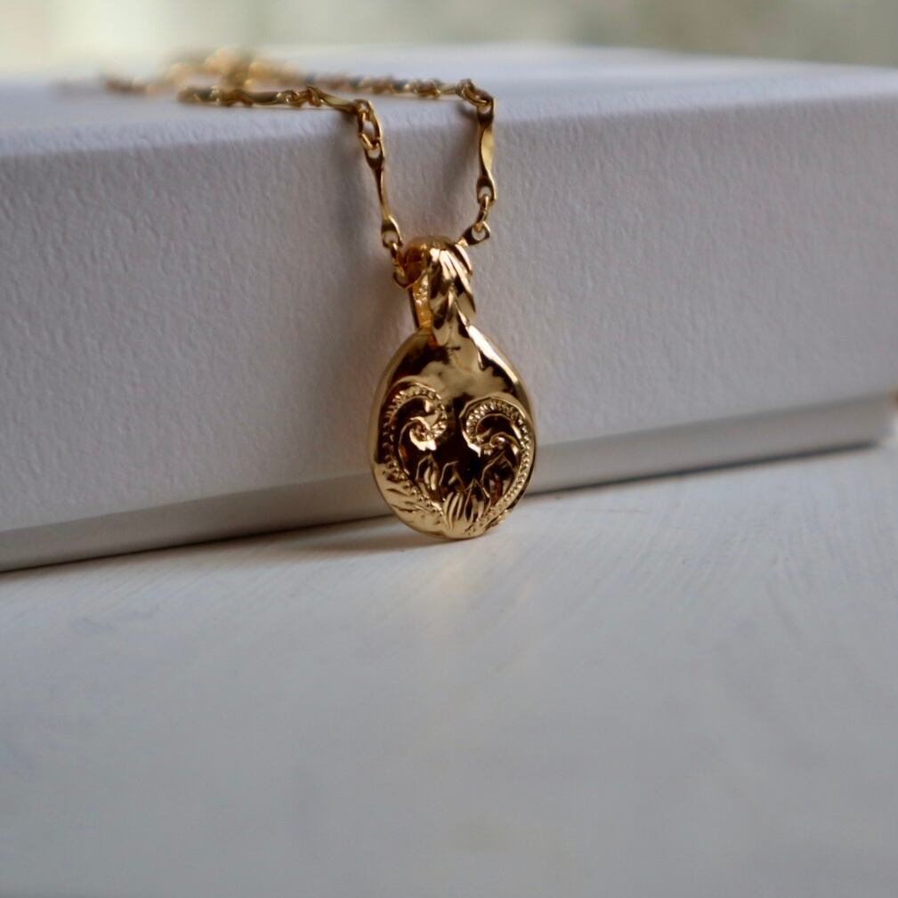 地金を溶かし出したような歪なコイン型のトップに、マイレのバチカンを合わせたペンダントトップです。